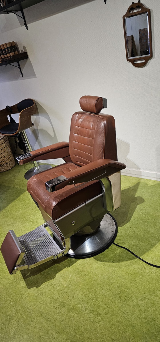 Complete your barbershop with these stylish electric Takara Belmont barber chairs. These vintage chairs exude class and comfort, perfect for an authentic barbershop experience.
