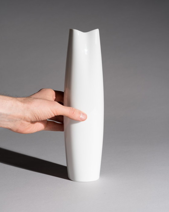 Founded in 1857 and later integrated into the Rosenthal group, Lorenz Hutschenreuther played a key role in shaping Bavarian porcelain in the mid-20th century. During the 1960s and 1970s, the manufactory embraced sculptural, pared-down forms aligned with international modernism—prioritizing volume, line, and material clarity over decoration. This vase is a textbook example of that philosophy.