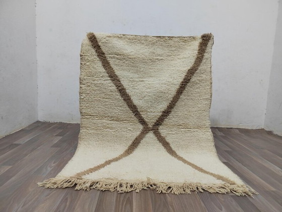 Immerse yourself in the timeless elegance of this Moroccan wool rug, a perfect blend of tradition and style. Crafted from natural wool, this piece offers a soft and inviting texture, ideal for adding warmth and character to any room.