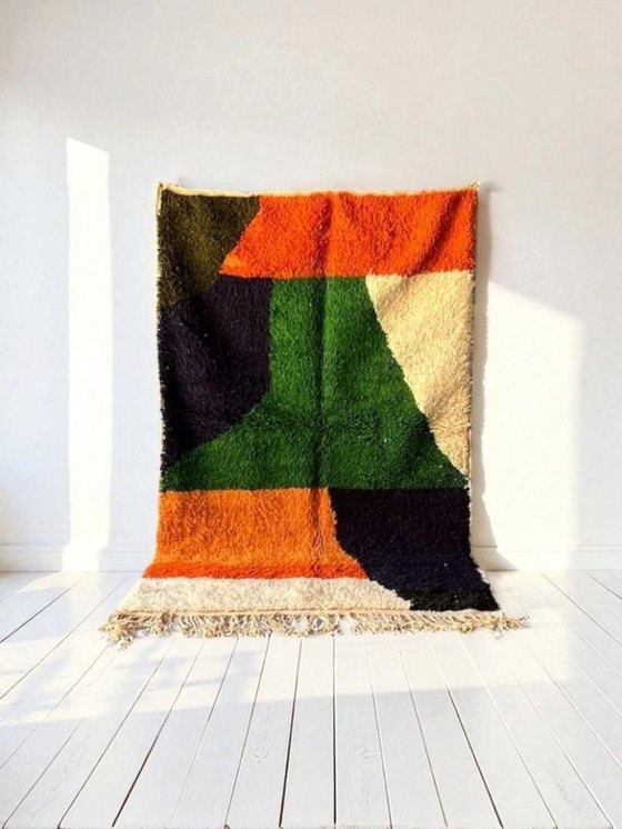 Immerse your living space in the vibrant allure of Moroccan craftsmanship with this exquisite natural wool rug. Measuring 250cm by 150cm, this piece is a testament to the rich tradition of Moroccan textile artistry, offering both visual appeal and tactile comfort. Its bold geometric patterns and vivid color palette make it a striking centerpiece for any room, effortlessly blending with various interior styles.