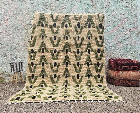 Immerse yourself in the rich cultural heritage of Morocco with this exquisite traditional Moroccan wool rug. Measuring an impressive 300cm by 200cm, this piece is a testament to the artistry and craftsmanship of Moroccan weavers.
