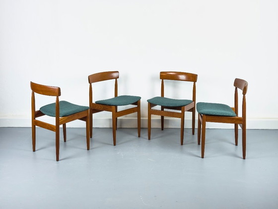 High-quality, delicate dining chairs made of solid teak with curved backrests, manufactured in Denmark.