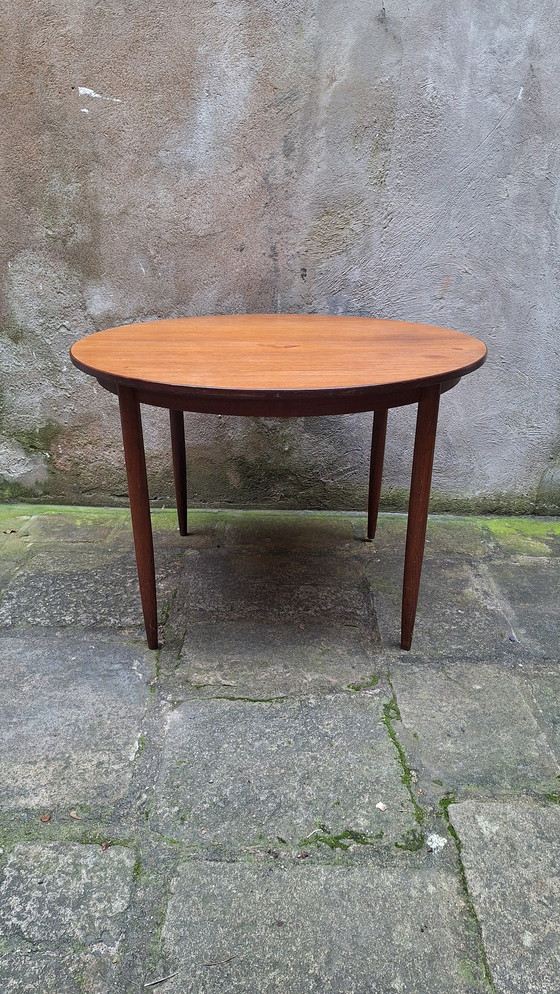 Teak table by alberts tibro. Made in sweden. Extendable table but missing extensions. The table is in good condition but some restoration work is required: varnish to be redone. The field has to be partially glued. Price accordingly. Table delivered disassembled (legs and top)