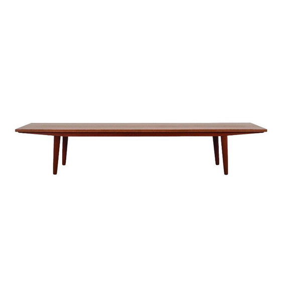 The structure is covered with teak veneer. The legs are made of solid wood. Surface has been refreshed.