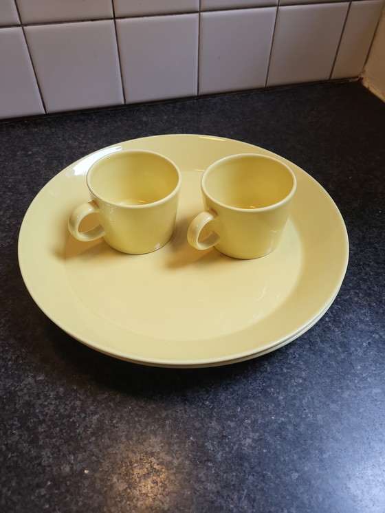 Two large plates and two coffee cups (the smallest) show minor signs of wear. Otherwise, completely intact, no clips.