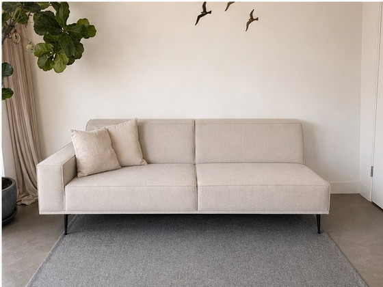 Beautiful minimalist designer sofa by The Cabinet with a timeless Scandinavian look. Thanks to its clean lines, slender legs, and neutral color, this sofa fits into almost any interior.