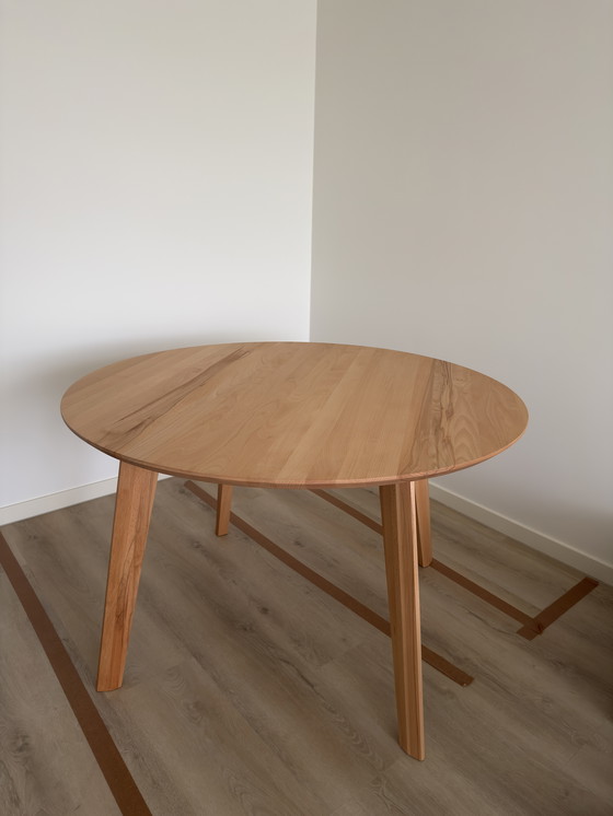 Beautiful round dining table by Sav & Økse, model Nonne, made of beech with an oiled finish.