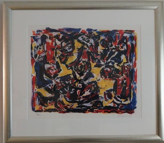 Beautiful colorful screen print by Dutch CoBrA artist Theo Wolvecamp.