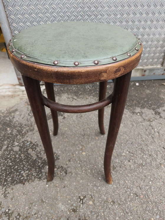 This vintage Thonet bar stool is a wonderful addition to any interior. The stool is made of high-quality wood with a leather seat and rattan webbing. The design exudes a classic charm that fits perfectly in a retro or vintage setting. The sturdy construction ensures durability and comfort.