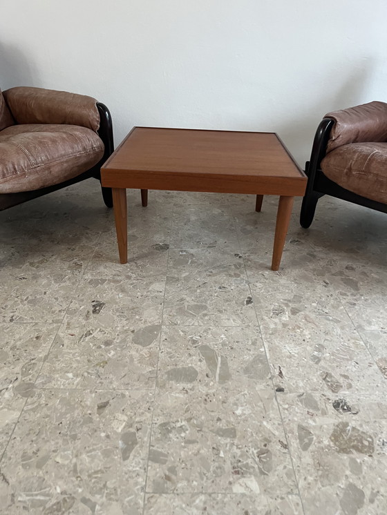 This teak coffee table impresses with its clean, balanced form and the warm radiance of the material. The understated design allows the wood to speak for itself, making the table a timeless piece of furniture with a serene presence. Its proportions appear functional and balanced without being ostentatious.