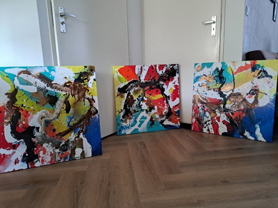 A triptych by Tiny de Bruin. Expressive with vibrant colors. Excellent condition. Certificate of authenticity included!
