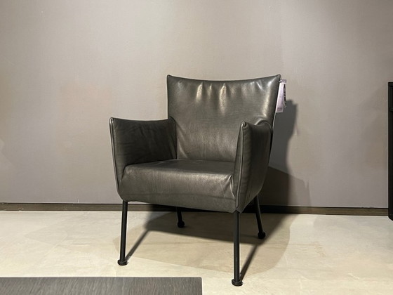 Showroom model: Togo armchair from Label Design: Rio leather, colour Dark grey with black stitching Frame is in black grey powder coating The price does not include delivery costs __