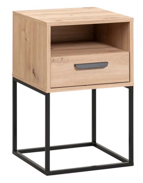 Meet the Tokio Side Table, your new favorite piece of furniture that’s as stylish as it is functional. This modern side table features a sleek design with a warm oak finish and a sturdy black metal frame, making it a perfect fit for any contemporary space.