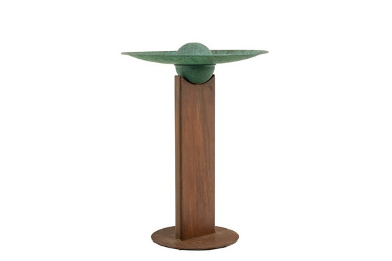 Corten steel and oxidized copper fountain, signed "TT" on the top of the base.