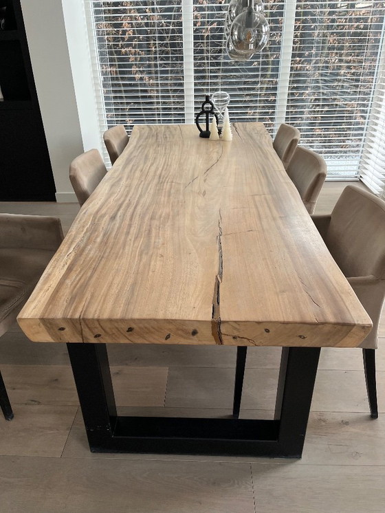 Suar tree trunk table from Raw Interiors Breda. In good condition, wonderfully comfortable. Dimensions: width varies from 93 to 110 cm due to its organic shape.