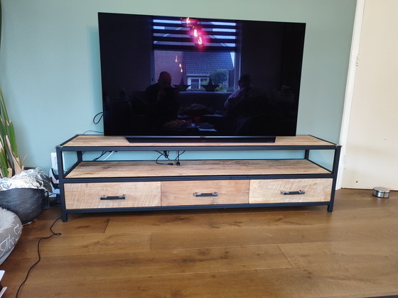 This TV sideboard is made of reclaimed teak. It's of very good quality.