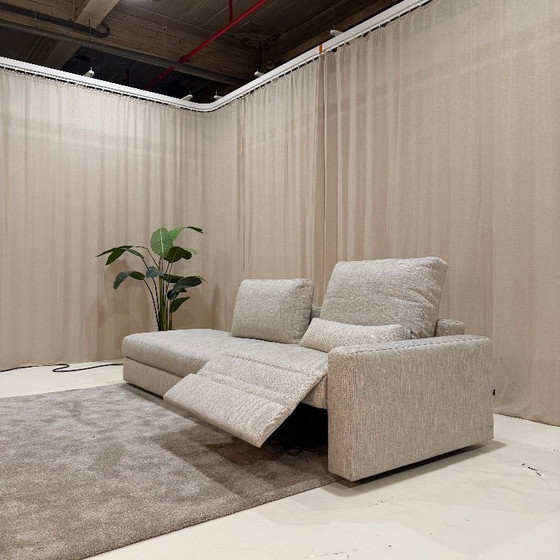 This two-seater Luv by Indera is a luxurious and refined design piece from a high-end Belgian collection. Combining elegant looks with exceptional comfort, the sofa is designed for those seeking quality, design, and functionality in a single piece of furniture. Thanks to its integrated reclining function, this two-seater can be used in an upright or fully reclined position, making it ideal for relaxing moments in the living room. The reclining function is electrically controlled by three separate motors, allowing the headrest, footrest, and seat position to be adjusted independently. This allows the seat to be perfectly adjusted to personal preferences, from comfortable sitting to fully reclined. The finish and upholstery seamlessly match the high-quality character for which Indera is known. This two-seater is in excellent condition and is part of a stock sale. Originally priced at €6,925, it is now available for €3,460.