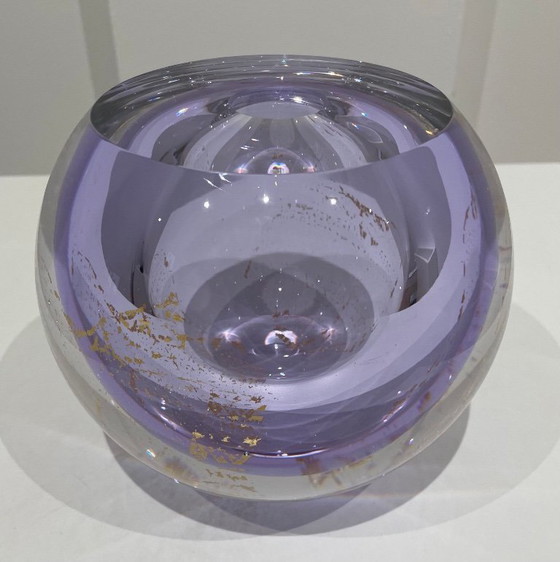 Crafted from clear and alexandrite glass, which gives it this beautiful lilac hue.