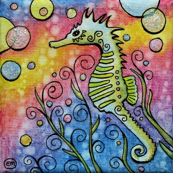 A truly small, hand-painted work of art! There's only one of these. This small painting measures 10x10cm. The sides are neatly painted, so you can hang it right up. The painting is also varnished. It makes a great gift!