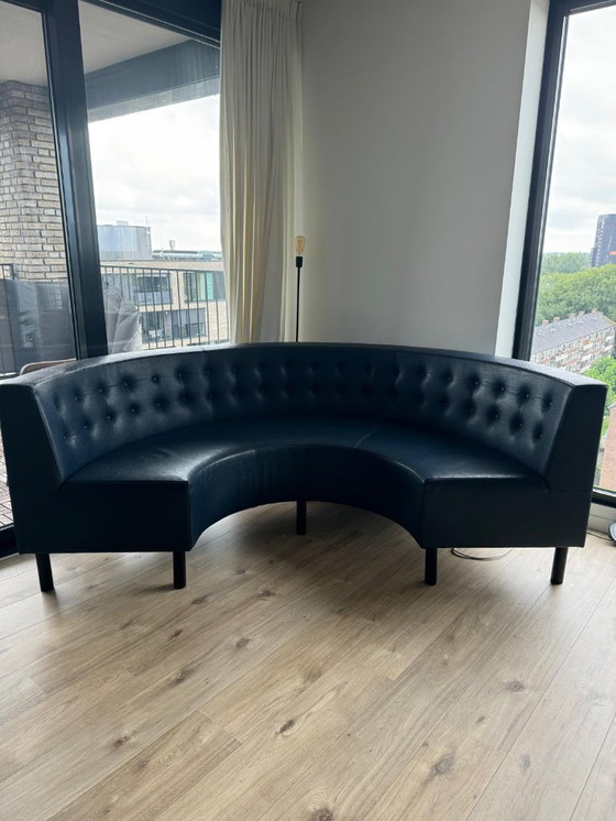 Experience the perfect combination of comfort and style with this unique round leather dining bench. With its elegant dark blue leather upholstery, this bench adds a touch of refinement to any dining room. Its modern look is enhanced by its clean lines and high-quality craftsmanship.