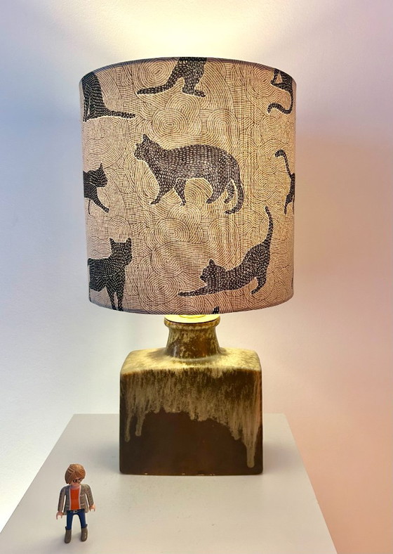 This vase lamp is a true one-of-a-kind piece: a piece of ceramic history, reinterpreted as a functional design object with personality. Ideal for lovers of West German pottery, cat lovers, and anyone looking for something special.