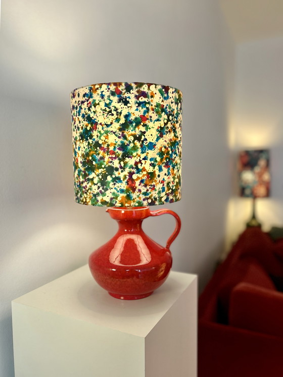 This striking accent lamp is based on a ceramic vase with a handle from the 1960s/70s. The manufacturer is not definitively identifiable, but the design and glaze clearly identify it as belonging to West German Pottery.