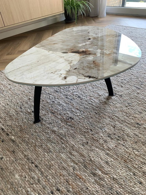 Elegant design coffee table with ceramic top in Tundra marble look. Beautiful natural drawing and easy maintenance.