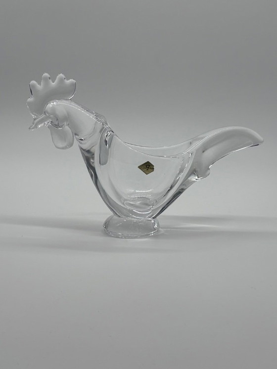 Immerse yourself in the world of French elegance with this exquisite crystal object from Vannes Le Châtel. Shaped like a rooster, it embodies the refinement of the Art Deco style and captivates with its clean lines and brilliant clarity. A true masterpiece of craftsmanship that will delight both collectors and lovers of stylish décor. Made from high-quality crystal, renowned for its exceptional clarity and brilliance. The artful shaping and clean design make it an ideal collector's item. Perfect as a decorative element, adding a touch of French charm to your space. Give your home a special touch with this unique piece of crystal art. Contact us for more information or to purchase this exceptional piece.