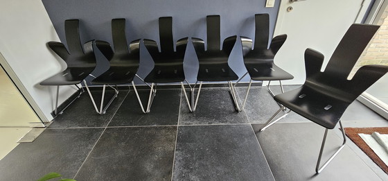 ConditionVery goodColorsBlackMaterialStainless steel, WoodNumber of items6BrandVarierFirst ownerYesHeight93 cmWidth53 cmDepth59 cmSeat height45 cmSigns of usageScratches