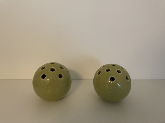 Vintage round vases. Beautiful light green color.
