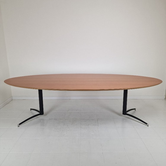 This impressive table by renowned Dutch brand Artifort makes a bold statement in any space. With its generous oval shape, it's perfect as a spacious dining table or a stylish conference table.