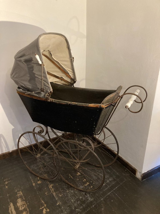 Discover the charm of bygone times with this highly original antique pram. A beautiful example of craftsmanship from a bygone era, perfect for collectors or as a unique decorative piece for your interior. Stunning porcelain details and a beautiful interplay of springs.