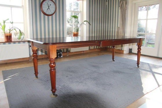 This beautiful Eichholtz mahogany extending dining table is an elegant example of Victorian design. Its extendable design offers flexibility. The rich brown mahogany exudes warmth and class, while the detailed legs add a classic charm. Ideal for any dining room that needs a touch of timeless elegance.