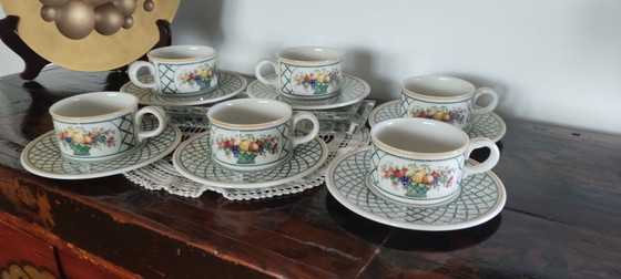 ES: Game of 6 cups of Villeroy & Boch "Basket" tea. Original Vintage years 70/80 in Vitro-Porcelana. Excellent condition, suitable for washing machines.