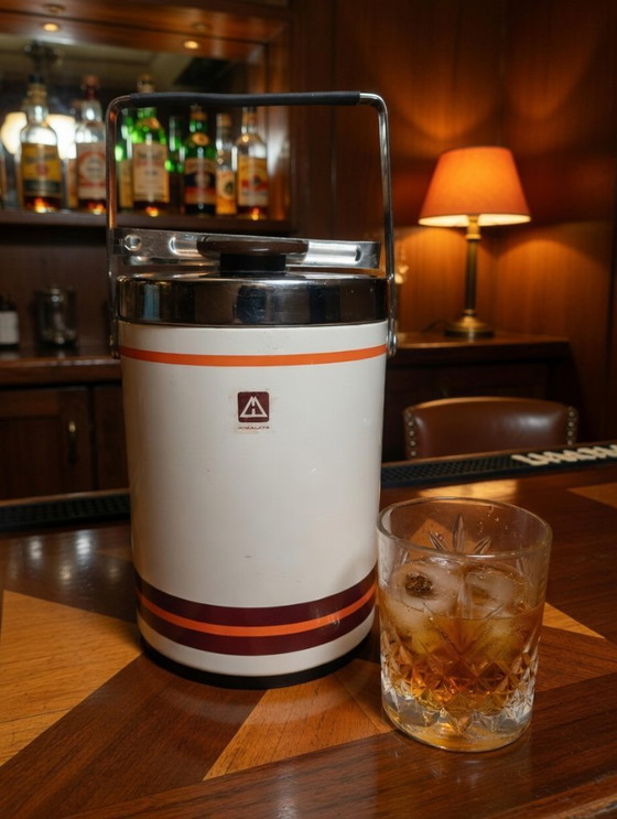 Looks stunning next to your old-school whiskey glasses on a wooden bar, in a man cave, or as an eye-catcher on your bar cart. Whether you are a true Mad Men fan, love space-age design, or just that warm seventies nostalgia – this is the statement piece that completes your setup. Condition: Beautiful vintage item – light signs of use that only enhance the charm. No dents, rust, or cracks. Ready to shine!