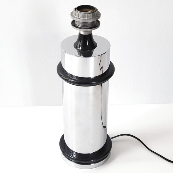 Vintage 1970s Table Lamp in Chrome Steel & Black Lacquered Wood