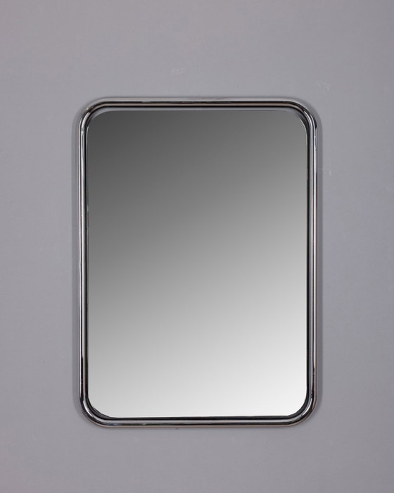 Wall mirror with chrome tubular metal frame, Italian design, 1970s.