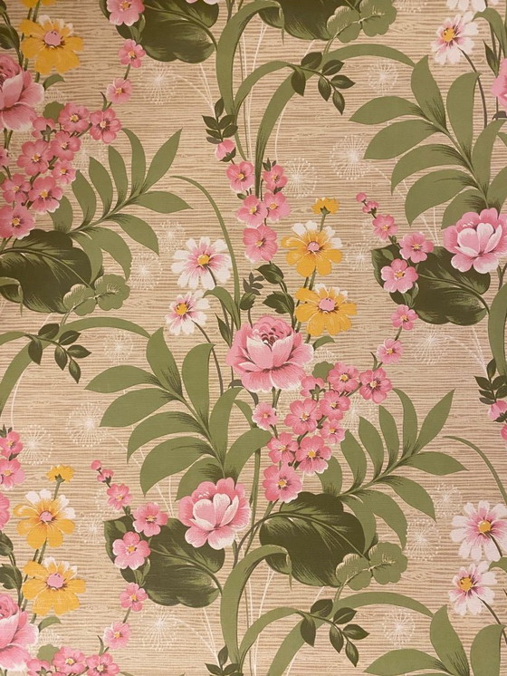 Original vintage 70s wallpaper with a colorful retro floral pattern.