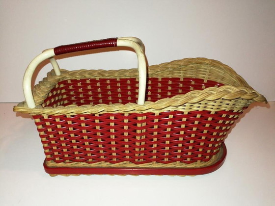 Ideal as a guest table presentation, guaranteed to make an impact. Made of wicker, wood and plastic imitating wicker. Good condition (slightly stained bottom). Brand : Art Vannerie