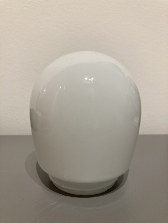 Vintage Art Deco ceiling/wall lamp in a teardrop shape and in opal glass. No screw-on rim. Use an E27 socket.