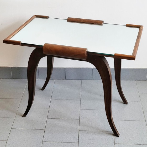 54 cm. A magnificent, well-made table. Good overall condition. There are the usual signs of wear and scratches on the mirror and the wooden parts, particularly at the ends of the legs. Length 68 cm. Width 41 cm. Height 52.5 cm