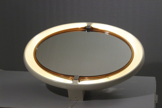Beautiful backlit wall mirror, ideal for a bathroom or dressing table, designed by Allibert France circa 1970.