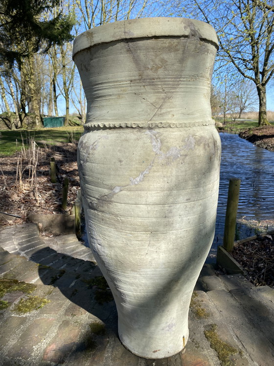 Discover this charming vintage Berber vessel from Fez, Morocco! Standing at an impressive 104 cm tall, this piece brings a touch of North African tradition to your home. Perfect as a decorative element in the garden or as a striking centerpiece in the living room.