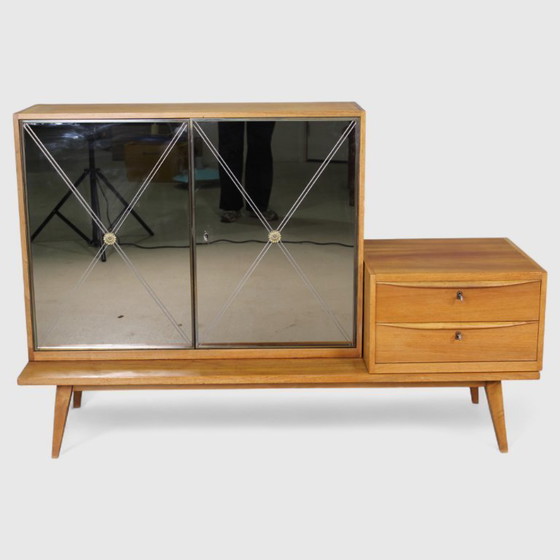 Mega special 50s drinks cabinet with lighting. This special, rare sideboard is of German origin and made in the 50s/60s by Rincklake of Endert in Münster (marked).