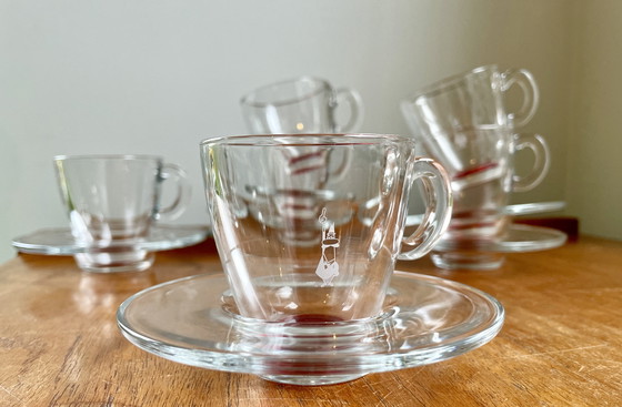Set of 6 espresso cups and saucers. A very sturdy glass set with the characteristic Bialetti logo.