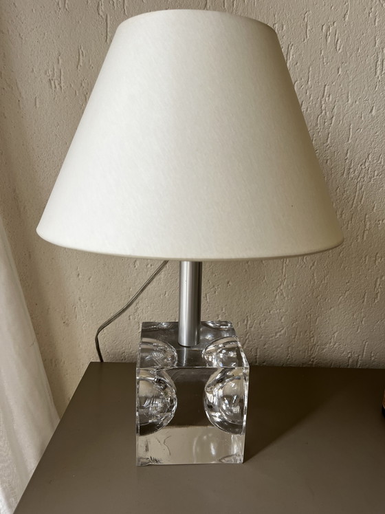 Vintage Royal Leerdam Crystal Cubic Glass Table Lamp Kritalunie Holland 70s by Willen Heesen