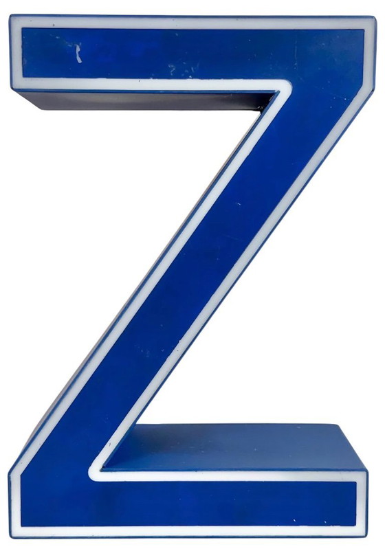 This vintage industrial blue plastic illuminated letter A was made in Italy during the 1970s and comes from an old advertising banner. It is equipped with a LED strip. The letter can be used as a table lamp or wall lamp. The weight of the letter is 0.4 kg.