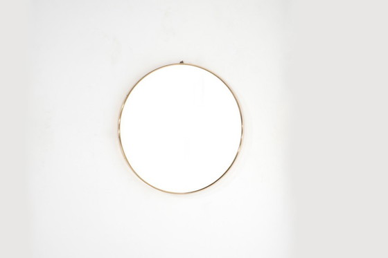 Vintage round brass mirror, some screws missing and new glass.