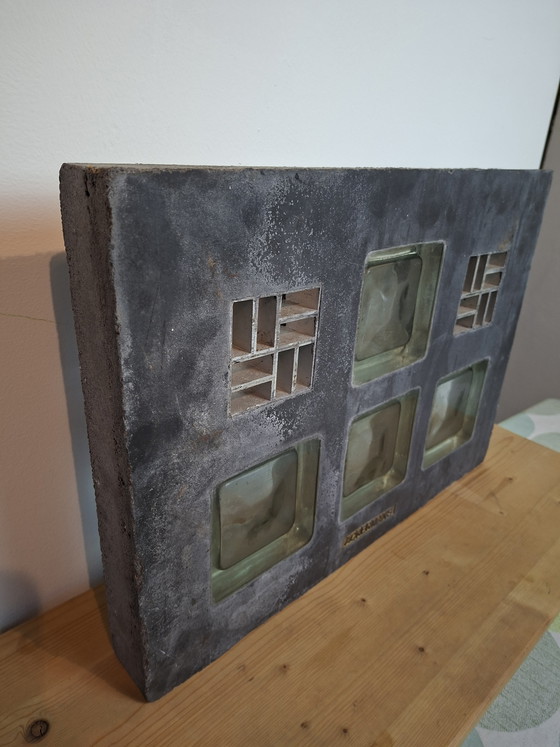 Today, this object perfectly embodies the Brutalist style, an architectural movement from the 1950s to the 1970s that celebrated raw, unfinished materials and bold geometric shapes. Its visible texture and modular shape make it a highly sought-after mid-century design piece, which can be transformed into a wall sculpture or a unique table lamp.