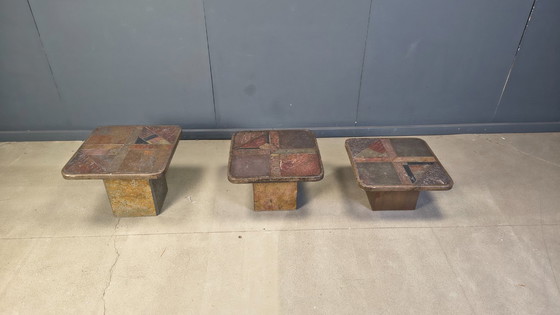 Brutalist slate stone nesting tables or side tables by Design Studio Stam.